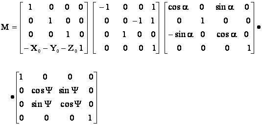 M¢ - матрица порядка 4, являющееся обратной матрице M, связывающей объектную правую и экранную левую системы.