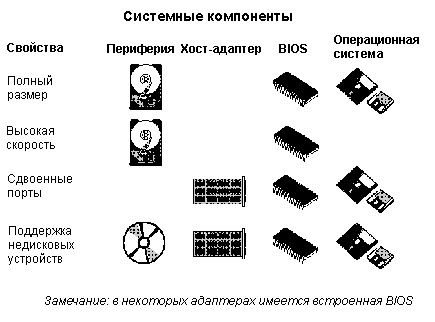 К самим устройствам (винчестерам, приводам CD-ROM или стриммерам) не предъявляется никаких дополнительных требований.