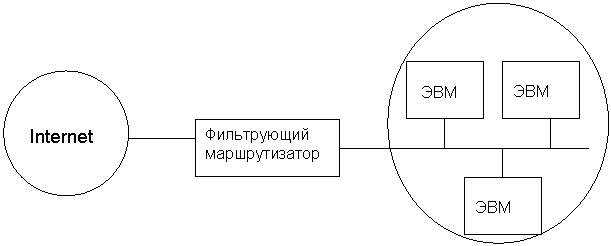 В этой схеме первичная безопасность обеспечивается фильтрующим маршрутизатором. Пакетная фильтрация в фильтрующем маршрутизаторе может быть реализована одним из следующих способов: