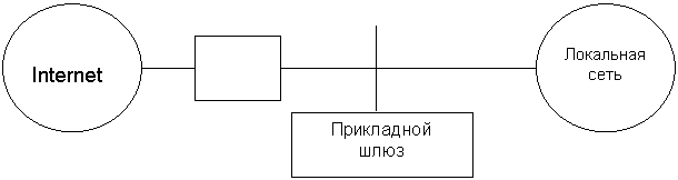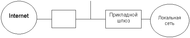 В отличие от схемы межсетевого экрана с фильтрующим маршрутизатором прикладной шлюз полностью блокирует трафик IР между сетью internet и защищаемой сетью. Только полномочные сервера - посредники, располагаемые на прикладном шлюзе, могут предоставлять услуги и доступ пользователям.