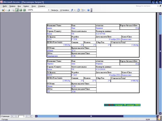 Внешний вид отчета «Пассажиры Запрос1»