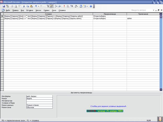 Структура макроса «открытие запроса рейс»