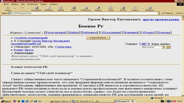 Внимание! Студенты, желающие победить в конкурсе работ о PR-2003, загляните на http://www.pronline.ru/ .