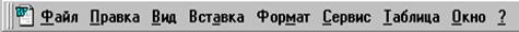 Под заголовком расположена строка меню. В ней перечислены пункты, объединяющие сходные по своему строению опции. Следует помнить, что любые действия могут быть выполнены с помощью той или иной опции определенного пункта меню. Назначение опций, объединенных под пунктами меню: