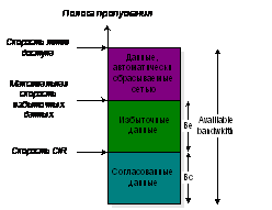 Рисунок 5. Распределение пропускной способности линии доступа при организации через нее виртуального соединения с определенными CIR и максимальной скоростью избыточных данных