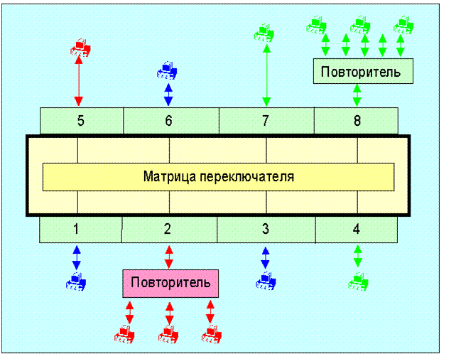 Рис. 13. Схема переключателя (или концентратора) с поддержкой VLAN.