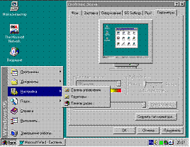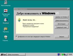 Результат: После запуска вы видите на экране элементы управления Windows 95. Выполнив запланированную работу, завершите сеанс общения с Windows 95.