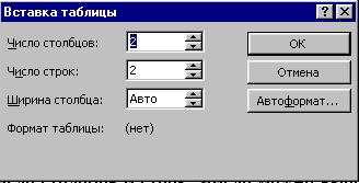 § Выберите кнопку Автоформат, если хотите применить к создаваемой таблице один из стандартных форматов.