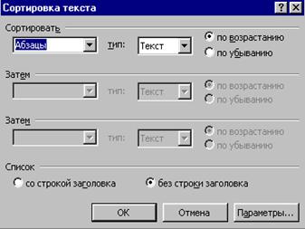 § Выберите команду Таблица | Сортировка. На экране появится окно диалога “Сортировка”.