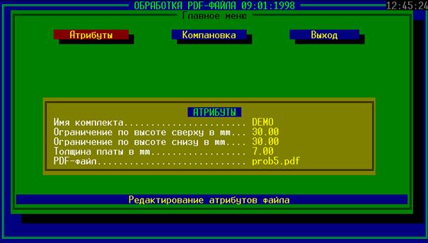 Из этого меню пользователь сможет управлять всей дальнейшей работой программы выбирая те или иные пункты меню с помощью функциональных клавиш.