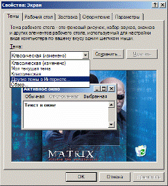 Оба стиля предоставляют широкие возможности настройки параметров. Можно создать свою тему, изменив элементы какой-либо из предопределенных тем. Когда все настроено, следует вернутся на вкладку Темы диалогового окна свойств экрана и нажать кнопку Сохранить как (Save as). Сохраненные в папке Мои документы или в %SystemRoot%\Resources\Themes, темы появляются в списке Темы.