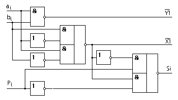 24. СХЕМА ОДНОРАЗРЯДНОГО СУММАТОРА С ФОРМИРОВАНИЕМ ЦИФРЫ ПЕРЕНОСА В СУП