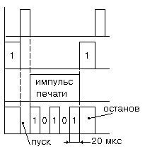 формируется нулевой пусковой импульс. Длительность импульса пуска 20 мкс, как и у рабочих импульсов при передаче символов.