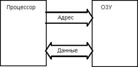 Центральный процессор при работе с ОЗУ должен указать адрес байта, который он желает прочитать из памяти или записать в память (рис. 1.12). Разумеется, из ПЗУ можно только читать данные. Прочитанные из ОЗУ или ПЗУ данные процессор записывает в свою внутреннюю память, устроенную аналогично ОЗУ, но работающую значительно быстрее и имеющую емкость не более десятков байт.
