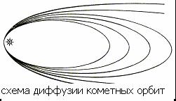 Орбиты периодических комет подвержены очень заметным изменениям. Элементы орбиты можно определить, если есть не менее трех наблюдений кометы. И без учета возмущающего действия на комету притяжения со стороны других тел Солнечной системы, задача нахождения этих элементов, в общем, кажется не столь сложной. Если же на практике по нескольким наблюдениям определить орбиту кометы и предвычислить ее эфемериду (т. е. положение ее на небе на период видимости), в следующее возвращение кометы к Солнцу ее можно либо вообще не найти, либо, случайно «переоткрыв» ее, увидеть, что элементы орбиты значительно изменились под влиянием гравитационных возмущений со стороны больших планет Солнечной системы. Дело в том, что вычисленная по нескольким наблюдениям комета без учета возмущений со стороны планет эллиптическая, параболическая или гиперболическая орбита – это так называемая оскулирующая орбита кометы, подчас значительно отличающаяся от реальной, по которой комета движется среди планет Солнечной системы. На практике оскулирующая орбита кометы пересчитывается на все более отдаленные в прошлое моменты времени с постоянным учетом гравитационных возмущений. Процедура пересчета элементов кометной орбиты производится до того момента, когда орбита окажется не подверженной влиянию со стороны больших планет. Такая орбита называется первичной. Первичная орбита кометы, будучи одной из кривых конического сечения (окружность, эллипс, парабола или гипербола), позволяет судить о принадлежности кометы к Солнечной системе. Большинство первичных кометных орбит – эллиптические, т. е. большинство комет - члены нашей Солнечной системы. Но стали ли они членами Солнечной системы, придя из межзвездных пространств, или всегда принадлежали к семейству планет Солнца? В каждом конкретном случае нужно специальное исследование.