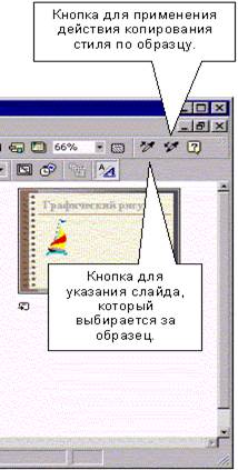 Работая в режиме сортировщика можно воспользоваться кнопкой "Формат по образцу" для того, что бы копировать цветовую схему одного слайда в другой или в целую группу слайдов.
