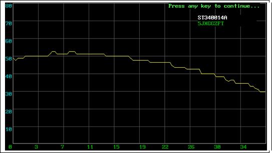 Кроме построения карты диска программа также позволяет строить график скорости чтения диска. Эту возможность можно включить в шестом пункте меню: Graphic: OFF – режим отключен, Quick Graphic – быстрое построения графика, Full Graphic – полноценное построение графика.