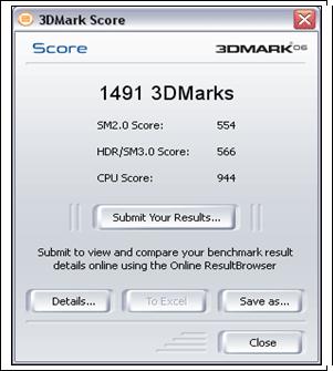 Также с помощью программы 3DMark можно оценить скорость работы видеокарты и всего компьютера. В конце теста программа выводит окно с результатами тестирования. Результаты представлены в баллах: