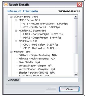 Нажав на кнопку Details, можно просмотреть подробные, результаты отображаются в среднем количестве кадров в секунду.