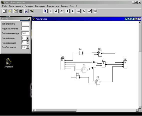 · Окно "Конструктор" - в нём строится сама цифровая схема.