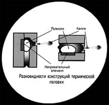 Метод газовых пузырей базируется на термической технологии. Каждое сопло оборудовано нагревательным элементом, который, при пропускании через него тока, за несколько микросекунд нагревается до температуры около 500 градусов. Возникающие при резком нагревании газовые пузыри стараются вытолкнуть через выходное отверстие сопла порцию (каплю) жидких чернил, которые переносятся на бумагу. При отключении тока нагревательный элемент остывает, паровой пузырь уменьшается, и через входное отверстие поступает новая порция чернил. Данная технология используется в изделиях фирм Hewlett-Pаckard и Canon.