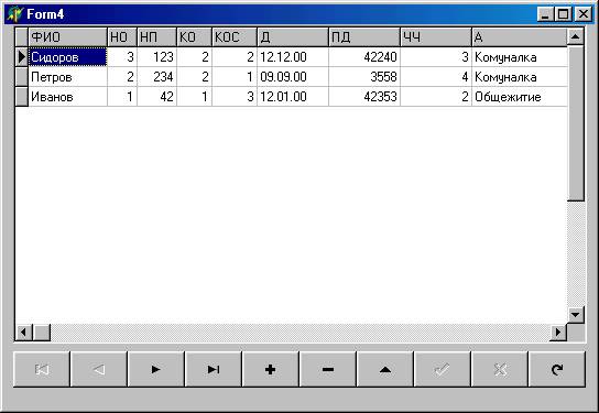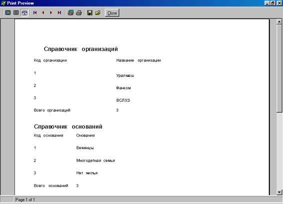 Мастер форм вызывается командой DataBase/FormWizard. На первом шаге выбирается тип формы: Сreate a simple form (простая форма), Create a master/detail form (составная форма, состоящая из главной и детальной форм, например: очередники и организации). Выбирается тип источника данных (таблицы или запросы), выбираются таблицы (запросы) и их поля, выводимые в форму. Если форма составная, то указываются поля связи главной и детальной таблицы (в нашем примере - код организации).Выбирается тип формы: вертикальная, горизонтальная или табличная. Полученную формуможно откорректировать.