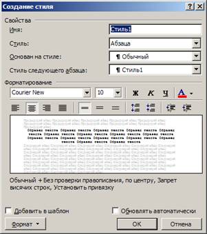 Как и при изменении стиля, создавать новый стиль можно как по образцу, так и в диалоговом окне Стиль.
