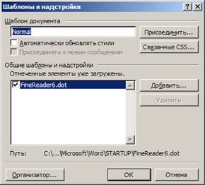 2. Выберите команду Шаблоны и надстройки из меню Сервис. На экране появится диалоговое окно Шаблоны и надстройки (рис.6)