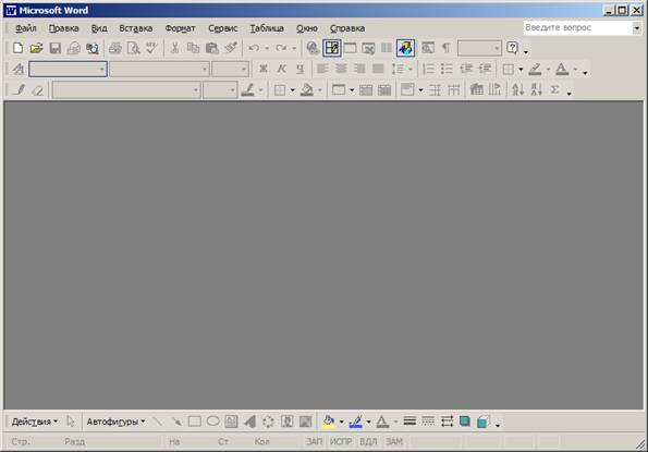 2. В зависимости от того, как быстро работает ваш компьютер, запуск Word займет некоторое время, но в любом случае вскоре вы увидите окно Word. Нужно внимательно рассмотреть экран — это начальная точка вашей работы в Word. Большое количество кнопок и пиктограмм предоставляют возможность быстрого доступа ко многим функциям Word.