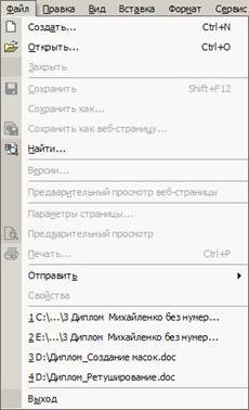 а) щелкнуть меню Файл и выбрать пункт Создать