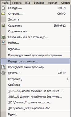 4. Появится чистый лист нового документа. Сначала нужно установить необходимые параметры страницы. Для этого мы должны в меню Файл щелкнуть на пункт Параметры страницы.