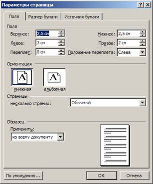 5. Появится диалоговое окно, в котором мы устанавливаем все необходимые нам параметры страницы (поля, размер бумаги, ориентацию и т.д.)