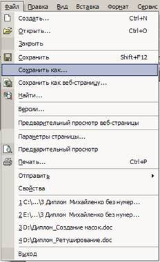 6. Теперь нужно назвать свой документ и задать ему место, где он будет храниться. Для этого мы щелкаем на меню Файл и выбираем пункт Сохранить как.
