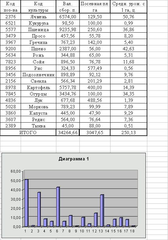 Урожайность культур по хозяйству
