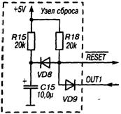 Узел реализован на элементах: R17,C9,VD14-VD17, R18.