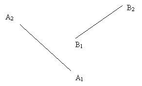 Для достаточного доказательства пересечения отрезков необходимо произвести все вышеприведенные операции над точками B1 и B2, т.е. провести через них прямую и выяснить расположение точек A1 и A2 относительно ее.
