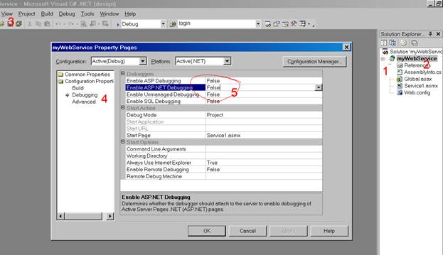 в) В ветви дерева Configuration Properties -> Debugging устанавливаем ASP.NET debugging значение «False». Нажимаем «ОК»