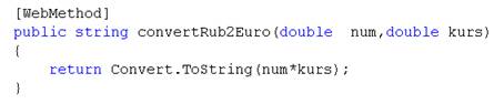 Для примера рассмотрим web службу с помощью которой будем переводить курс из какой либо валюты на рубли, при этом курс вводит сам пользователь. В реальных условиях процесс перевода можно выразить как «СУММА * КУРС», то есть произведение суммы на курс дает нам искомое значение.