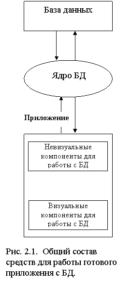 Общий состав средств, необходимых для работы готового приложения с БД, показан на рис.2.1. Согласно этой общей схеме, мы имеем цепочку