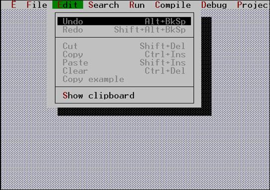 Наиболее практичными и удобными с точки зрения пользователя можно считать системы, имеющие экранный интерфейс, построенный на основе системы всплывающих меню. Наиболее распространенными в настоящее время являются две идеологии (имеются в виду DOS-приложения), включающие в себя и определенную форму экранных окон и цветовую гамму и вид всплывающих списков. Это инструментальные Среды фирмы Borland, и операционная оболочка Norton, фирмы Symantec. Обе идеологии предусматривают определенное разбиение экранного пространства на области или зоны, предназначенные для конкретных информационных объектов и действий. Зоны могут быть в некоторой степени переконфигурированы по желанию пользователя: изменены размеры и положение на экране. Команды обработки данных вызываются из системы меню, присутствующего на экране постоянно (Borland), или вызываемого по функциональной клавише (Symantec).