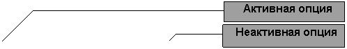 Дополнительная координата и массив координат выборов будут выполнять двойную роль: при выводе горизонтального меню массив содержит номера колонок для каждого выбора, а дополнительная координата определяет строку вывода, при выводе вертикального меню в массиве будем иметь номера строк для каждого выбора, а дополнительная координата определит столбец вывода. Для отображения “горячей” клавиши необходимо определить в строке выбора какой-либо маркер, символ, следующий за ним, будет использоваться в качестве “горячей” клавиши и отображаться с выделением (рис.6)