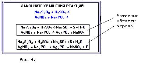 Для проверки изученного материала на экране монитора высвечивается кадр (картинка), где представлен вопрос и варианты предлагаемых ответов, подготовленные в модуле Writer. Варианты ответов обведены в специальные прямоугольники (или любые другие геометрические фигуры), которые при составлении сценария были обозначены (заявлены) активными областями экрана. Поэтому при ответе на поставленный вопрос ученику будет достаточно подвести курсор “мышки” к прямоугольнику с правильным ответом и щелкнуть левой клавишей мышки. Если ответ “верен”, то машина выводит соответствующий комментарий, созданный в модуле Writer, и переходит к следующему этапу в соответствии с написанным сценарием, в противном случае она дает возможность повторить слабо усвоенный раздел и исправить допущенную ошибку.