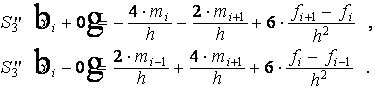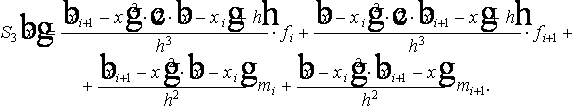 называется наклоном сплайна в точке (узле) xi . Кубический сплайн S3(x), принимающий в узлах xi, xi+1 соответственно значения fi, fi+1, имеет на частичном отрезке [xi, xi+1] следующее выражение [ 3 ] :