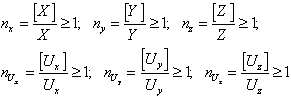 A. Пользователю предлагается ввести допустимые перемещения относительно оси 0X [X], оси 0Y [Y], оси OZ [Z] (в миллиметрах). Из файла результатов считываются перемещения узлов X, Y, Z. Вычисляем “запас” жесткости для каждого узла :