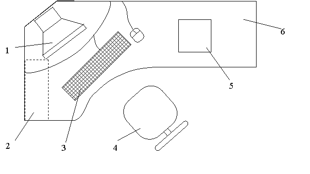 1 – монитор, 2 – системный блок, 3 – клавиатура, 4 – стул, 5 – методический материал, 6 – стол.