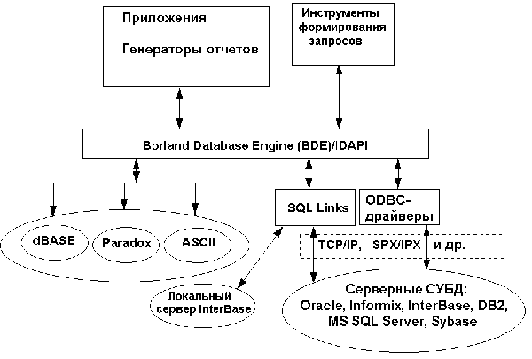 Рис. 4 Связь приложений с источниками данных с помощью BDE.