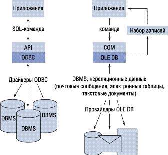 Технология OLE DB[2] пришла на смену ODBC, с тем, чтобы устранить ее недостатки. OLE DB основана не на API, а на COM[3] Это облегчает разработку не только конечных приложений, но и функциональных эквивалентов драйверов ODBC – средств доступа к данным OLE DB, называемых также провайдерами OLE DB. Ведь теперь в их роли могут выступать любые COM -компоненты.
