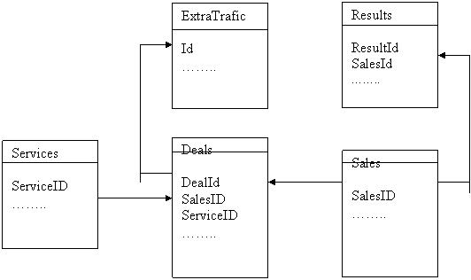 § Results – таблица, содержащая информацию о результатах деятельности каждого сотрудника отдела продаж за каждый месяц работы.