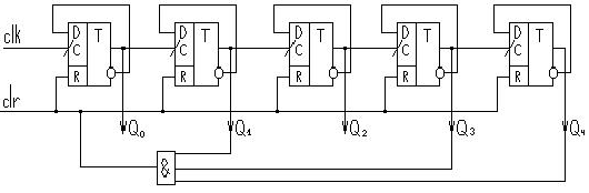 Синтез асинхронного двоичного счётчика, выполняющего прямой счёт, с модулем счёта равным 26, используя триггеры типа D.