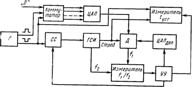Время переходного процесса ЦАП большой разрядности можно определить с высокой степенью точности, поскольку практически устраняются перегрузки входного усилителя осциллографа или компаратора, обусловленные большим перепадом сигнала на выходе контролируемого ЦАП. Однако производительность осциллографических методов измерения невысока. Кроме того, этим методам присущи погрешности субъективного характера, что не позволяет использовать их для серийного производства преобразователей.